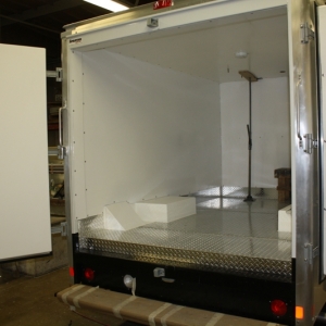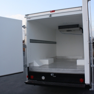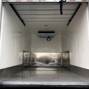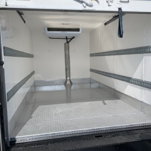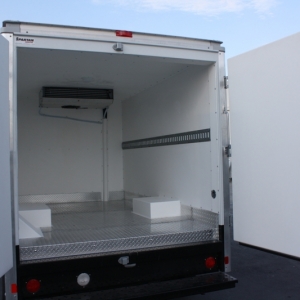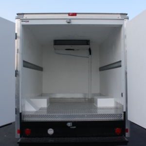 Box Trucks are one of the most versatile of the commercial vehicle fleet. Thermobile will convert your swing door box with 3” of 2 pound density urethane foam on all six sides, including the rear doors, then cover it with our rigid and resilient molded fiberglass liner. The floor will be covered with our aluminum diamond plate. The 3” insulation will help the refrigeration do it’s job while keeping out the heat.